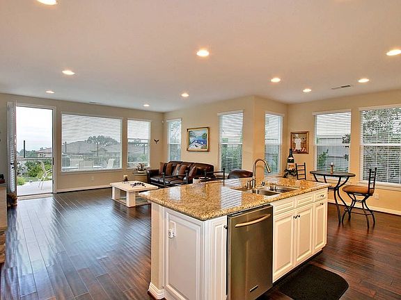 Smashing home w/ ocean views from 1st & 2nd levels. Gorgeous Bay Collection w/ walnut hardwood flooring, gourmet kitchen w/ island, granite counters, stainless steel appliances, breakfast area. Family room opens to view, ocean breezes, patio w/ built in barbecue. First floor Master has French doors to separate patio, master bath is beautifully upgraded w/ marble, dual sinks, designer finishes, soaking tub & separate shower. Dramatic entry with formal dining & living room. West side of street. Security system. Speakers on patio and the family room is wired for speakers. Fireplace for those cool nights. Third garage is used for art studio (some homes in the neighborhood have converted 3rd garage to extra room and added French doors instead of garage door & installed door from living room). See virtual tour and click photo tab above the video for all the pictures.