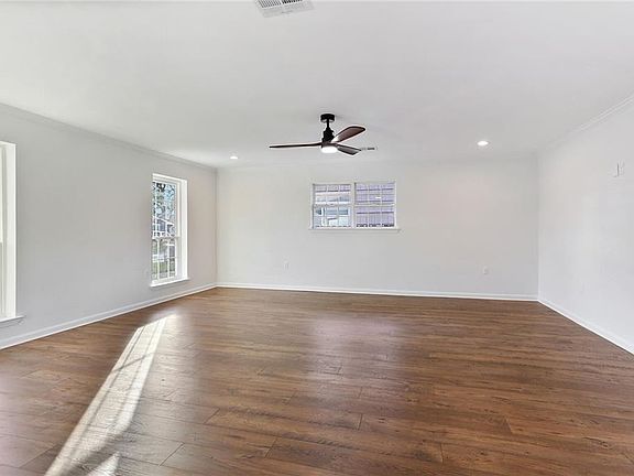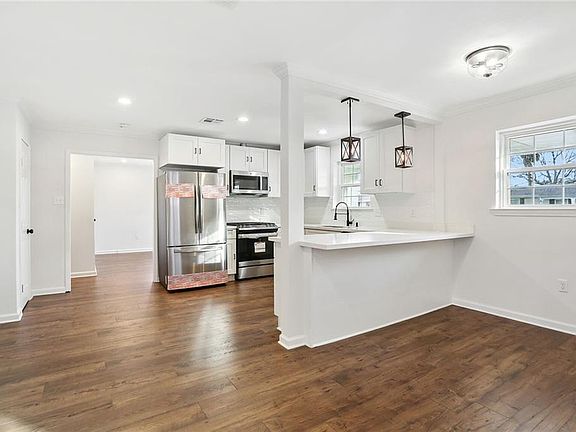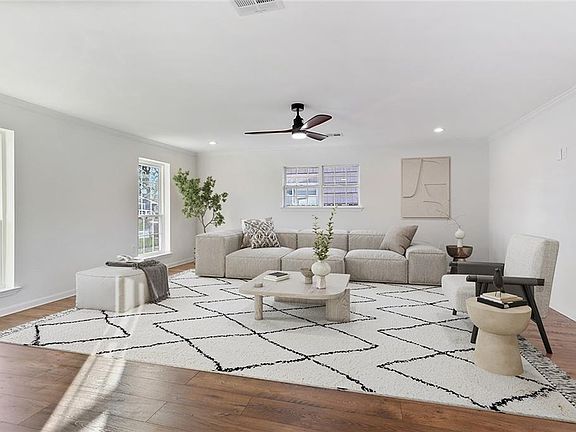 Home totally rebuilt/renovated 2023. New New New from A to Z. Open floor plan. New windows, roof, HT & AC, WH, plumbing, electrical, driveway, sidewalk. Dream design kitchen. Light fixtures make a statement. 2 living areas. LWD waterproof wood floors. Laundry room, transf flood insurance. Handsome baths. Stainless appl include refrigerator.
