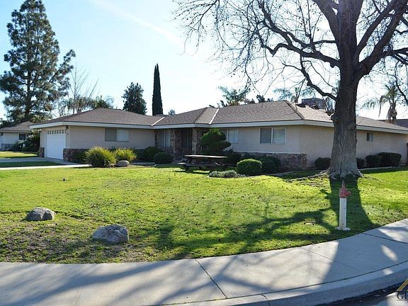 Charming Home on Corner Lot with a Pool! This 4 bedroom, 2 bath home has just the right touches with an amazing floor to ceiling stone fireplace in the family room, adjacent kitchen with granite countertops, large breakfast bar, gas cooktop, and wall ovens. The spacious formal living room has views of the sparkling swimming pool with French doors that lead to the covered patio. Fantastic park-like yard with mature shade trees, a large covered patio with ceiling fans, partial block wall fencing, and a refreshing in-ground swimming pool that is perfect for the hot Bakersfield weather. Newer roof was replaced within the last few years. Desirable Northwest location in quiet neighborhood, close to shopping and schools.