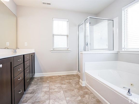 Built in 2010, this Cary two-story offers hardwood flooring, a fireplace, a two-car garage, granite kitchen countertops, a kitchen island with breakfast bar, stainless steel appliances, a walk in kitchen pantry, a walk in master closet, a master bathroom with a separated step in shower and tub.