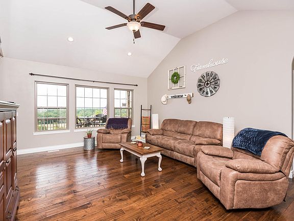 Bursting with Charm & Character & Curb appeal, this 4 bedroom, 3 full bath ranch style home truly HAS IT ALL! Situated on an oversized lot & conveniently located. Gorgeous hardwood floors, soaring ceilings & an incredible view of the rolling hillside from oversized windows spanning the living room greet you once you enter. The kitchen is loaded with Custom Cabinets, a full pantry with pullouts, an eat in area & bar, & separate Dining Room. Split bedroom design is sure to please with a Master suite perfect for most, featuring a large walk in closet, jetted tub, dual vanities & separate custom tiled walk in shower! Two additional bedrooms on the main level are oversized with walk in closets. In the lower level, you'll find a massive family room with fireplace, 4th bedroom, custom built