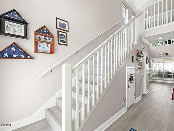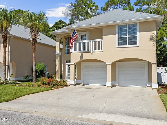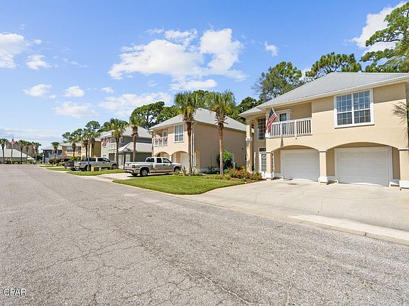 CURRENTLY UNDER CONTRACT - SELLER CONSIDERING BACK UP OFFERS!!! Welcome to Lagoon Estates and the only home currently on the market in this highly sought after gated, waterfront with marina, pool and your own private boat slip, neighborhood! This one has it all! Lagoon Estates is located just off North Lagoon on the East End of Panama City Beach close to all the local's favorite restaurants, St Andrews State Park, three marinas and just a short boat ride into St Andrews Bay, Shell Island and the Gulf of Mexico for all the saltwater activities you love! This quiet neighborhood enjoys a gated entrance on a cul de sac, privately owned street. The waterfront community room and pool look out onto the marina and all the privately owned boat slips fully equipped with lighting, electricity and water, and Lower Grand Lagoon. This home is something to see! Meticulously maintained with new exterior paint, new Traverstone pavers on the covered back patio, new luxury engineered, waterproof, vinyl plank flooring throughout, tankless gas water heater and clever pocket doors, this home is move in ready and is already a showplace for entertaining. As you enter the foyer you immediately look up to the 18' ceilings, the gorgeous staircase and all the natural lighting coming in from the many windows. You pass a half bath and then enter the spacious living room showcasing 18' ceilings with more windows with remote blinds and natural lighting. The gas fireplace is the center piece of the room with gorgeous built-in bookcases on either side to display all your loved ones and memories here on the water. Windows all along the back of the home bring the natural light in and take you outside to the spacious, covered patio extended by a sail shade to keep you cool in the warmer months. Plants thrive in this location and add to the peace and tranquility of this space. Moving from the living room to the dining room allows you to view this gorgeous space as well. The kitchen is fully equipped with stainless appliances and a newer gas stove. Plenty of counter space as well for the gourmet chef! Upstairs you will find a magnificent master bedroom with two large closets with closet organizers, a cozy master bathroom with jetted tub, separate tile shower and two separate sinks with vanities and a spacious, private, balcony overlooking a beautifully landscaped area with mature trees. The guest bathroom is just down the hall and showcases a double vanity, shower/tub combo and a storage closet at the end. All with pocket doors to make ample use of space. The two guest bedrooms are roomy, with doors to the front balcony and closet organizers in each room. Seeing this home is believing all the beauty it beholds. Call to schedule a private showing of this home and neighborhood and see why it is the only one on the market today!