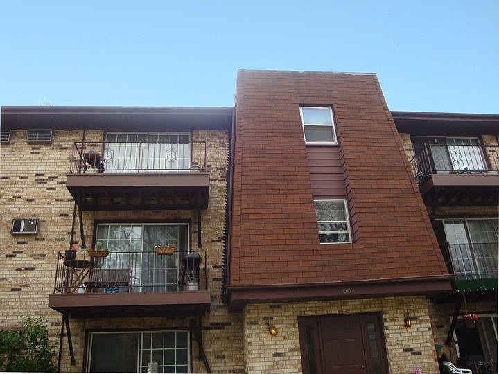 2 bedroom, 1 1/2 bath Third floor unit. New laminate floors in dining and living room. Spacious master bedroom with half bath attached. Recently updated kitchen. Extra Storage in basement. Pets Allowed. Close to expressway and Shopping. In-unit laundry.