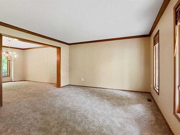 We just repainted interior of this extra large 5 bedroom, 4 bath home with finished daylight basement for a total of 3795 sq. ft. of living & entertaining space. Great backyard woods for exploration. Welcoming & comfortable open floor plan. Spacious living room opens up to the formal dining room, both w/crown molding. Nice open concept flow of the kitchen, casual dining space & family room. A sunny kitchen offers an abundance of cabinetry, an island w/breakfast bar, under cabinet lighting, a pantry, a window over the sink plus a planning desk or coffee bar space. Sliding doors from the casual dining area provide access to the outdoor patio. The family room showcases a brick front fireplace flanked by built-ins, recessed lights, a beamed ceiling, plus expansive windows for natural lighting. All 5 bedrooms are privately located upstairs. The master suite provides an en-suite bath with twin sink vanity, linen closet & walk-in closet has built-in shelving. Four additional generously sized bedrooms & 2nd full bath complete this level. Bedroom #5 is substantial & would make a great student study area or guest bedroom. The finished daylight basement ensures there is plenty of room for family & friends to gather; a huge L-shaped rec room, half bath & storage. Separate main floor laundry room has overhead cabinetry for organization. Expansive covered front porch & entry door with sidelights. Side loading 2 car garage with extended driveway/parking pad. Handy service door to garage from front porch. Large .57 acre lot with mature landscaping & wooded back perimeter for privacy & perfect for bird watching. Special details include new HVAC system 1 year old, new carpet 2017 in living room, dining, stairs & 3 bedrooms, pocket doors, beautiful open staircase, 6 panel doors, hardwood flooring from the entryway, hallways, kitchen & family room, half bath, laundry & bedroom #2, fresh exterior paint 9/2018, plus owned water softener new 2014. Beautiful setting & plenty of space for everyone!
