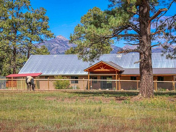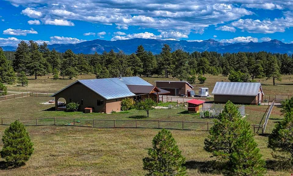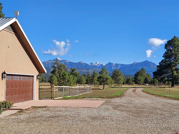 Absolutely picture perfect MOUNTAIN VIEWS surrounded by nature from this 2,000 sf ranch style home set at a quiet dead end road on 20 spectacular park-like acres. The land is all usable, fenced and cross-fenced with beautiful mature pines, lush pastures of brome and timothy for grazing and two ponds - one spring fed. Calling those looking for peaceful country living with NO HOA, this home has two bedrooms, plus a good sized office or flex room which could be used as a third bedroom, two full baths, living room with corner woodstove, vaulted ceilings with a ton of natural light and amazing views of Pagosa Peak, Eagle and Saddle mountains. The kitchen has a Bosch induction cook top, double oven, lots of cabinet space and is open to the dining room. The oversized two-car attached garage has wall to wall cabinets for storage and leads to the laundry/mud room. Radiant heat with 8 zones allows for clean efficient heating. Enjoy expansive views out front from the covered porch with Trex decking or soak up the sun from the south facing patio. From the entire east side of the property enjoy views of Square Top, Nipple Mountain, and Blackhead Peak. Bring your horses, dogs and toys as this property is all set up to start living your mountain dream. Dogs have over 1/2 acre fenced around the house. Nicely landscaped grounds provide vibrant colors throughout the season with lilacs, peonies, russian sage, lavender, roses, and a flowering crabapple tree. A garden with raised beds, a chicken coop with heat lamp, and a 55ft RV site w/ hookups are out back waiting to be enjoyed. In addition to the oversized attached garage, the detached two-car garage is a great shop and will house your mountain toys. The 900sqft barn has two 12x15 stalls with outlets for heated water buckets, hay storage for 180 bales, a frost free hydrant, outlets for heated troughs, excellent footing with sand, pea gravel, and stall mats throughout, and a lean-to/overhang leading to a 7200sqft paddock with Priefert utility panels and pea gravel footing. This is an ideal setup to care for your horses while allowing them plenty of room to roam. Located about 10 minutes from town, this rare and hard to find property will delight those looking for a very special country mountain home.