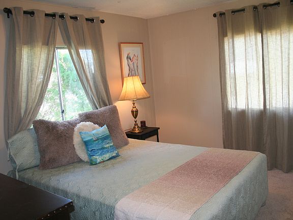Modernized, Updated Mobile Home Professionally ReDesigned! $18,500 Situated just over the Manatee River bridge from Bradenton, this 12’x52’ Palm Bay mobile home has been professionally updated and redesigned by Glade Homes, an interior redesign firm with a mission to offer upscale living at an affordable price! Filled with inspiring ideas and completed with passion (and a lot of elbow grease), this clean, updated home features a two bedroom split plan (bedrooms/office on each end) with one and a half baths, roomy bedrooms, a roomy screened lanai and a shed with washer/dryer hook up. Central heat and air adds to the value of this home priced to sell. I’ve seen the competition. Dozens of homes with tons of clutter and/or outdated furnishings, walls (wallpaper from the 70s or plain, dark paneling) and flooring. This home stands apart from the rest in this price range and is move-in ready! Be the first to move in to the best home in the area. (I urge you to look on craigslist and mobile home village.com to compare) New, quality Sherwin Williams paint inside and out (finishing now), your color palette is in neutral greys, taupes and creames, the latest modern treatment and perfect for adding your own favorite accent colors. You’ll also appreciate new quality flooring throughout and new or gently used and up-purposed furnishings and accessories. You even have REAL quality drapery panels (not dated verticals or cheap mini blinds). I’ve added a new refrigerator in the kitchen featuring wood cabinet doors with new hardware. Palm Bay Mobile Home park boasts that it’s the ‘happiest mobile home park in Florida.” I’d have to agree. The managers are great and neighbors so helpful and friendly. A beautiful heated pool, shuffleboard and plenty of community activities are among the many benefits living in Palm Bay. This well kept park in Palmetto, Florida is situated at the intersections of I-75, 301, 41 and Hwy 19. Two miles to the lovely Bradenton downtown, 20 minutes to the best Gulf Coast Beaches in Florida, and 20 minutes to Sarasota, the Cultural Capital of Florida - ‘location, location, location’ is an important piece of this sound real estate investment. Whether you want to sit quietly and read a book or go out to enjoy the endless cultural, dining and shopping opportunities in Bradenton, St. Pete or Sarasota, you’ve got the best of both worlds. You can actually walk to shopping and restaurants and WalMart is across the street. The lot fee is $518/month. You must be 55 but the second person can be 40 or older. You can also rent this home if you’re looking for an investment. Please email with questions or a time for viewing. I have a flexible schedule afternoons, evenings and weekends. The price of $16,500 is market competitive but other reasonable offers will be considered. POSSIBLE OWNER FINANCE. My last Glade Homes mobile home sold in less than two weeks with more than 30 inquiries…in other words