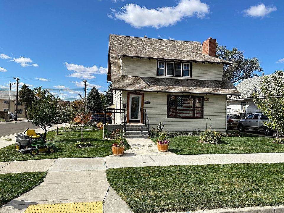 From the first moment you walk up to the house you'll appreciate the gorgeous cedar detailing, new concrete and custom railing, abundant fruit and shade trees, flowering perennials, and a beautiful privacy fence. Pride in ownership continues from your first step through the front door with gorgeous shiplap thoughtfully hung throughout the house as well as beautifully refinished original hardwood floors. Light and bright, the spacious main floor boasts a large living and dining room with a built-in buffet, perfect for family gatherings, a main floor office and a tastefully remodeled kitchen with exposed brick, painted cabinets, butcher block counters, tiled backsplash and faux tin ceilings. Continuing up the beautifully redone stairs to the 2nd story, you're sure to appreciate the thought put into the new full bath with a gorgeous clawfoot tub, custom tiled shower with Moen fixtures, the beautiful vanity and a laundry chute! The large primary bedroom is sure to please with a separate reading room, nursery or office and a walk-in closet. The 2nd bedroom is also nice sized with a walk-in closet and lots of light! The 3rd bedroom is also nice sized with a smaller closet. The partially finished basement, with never ANY water issues, features a wood fireplace, space for a bedroom and an older 3/4 bath as well as laundry, storage and the mechanical area. Stepping out the side door you'll appreciate the oversized double garage and beautifully manicured fenced-in back yard with raised garden boxes, beautiful perennials and numerous fruit trees. Call your favorite agent for a private showing today!
