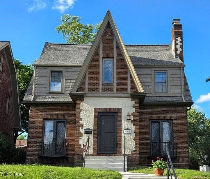 This is a home of character and old-world charm updated for you to just move in! Well-built Tudor style home. Hardwood floors add warm and elegance throughout the home. Beamed living room with fireplace creates a cozy and inviting space. Natural trim throughout. Formal dining room is perfect for hosting dinners and gatherings. Updated kitchen with breakfast nook, butler pantry and loads of cupboards. Library/Study is ideal for quiet time or working from home. Upstairs on the 2nd floor are 3 nice size bedrooms, updated bath. Bonus room on the 3rd floor. Full basement. Corner location convenient to bus routes, Malone College, restaurants and shopping.