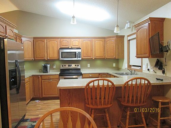 Move right on in and enjoy this great home in SE Mandan with so much to offer! There is new carpet and laminate through all of the home (only 1 bedroom has original carpet!)! The floor plan is semi-open and very inviting with tons of natural light - and topped with vaulted ceilings and recessed lighting! The main floor offers a roomy kitchen with stainless steel appliances, and high-definition countertops! The large dining room walks out onto the mostly maintenance-free deck. The large, bright living room has bonus recessed lighting! The MASTER SUITE offers vaulted ceilings, a large walk-in closet and 3/4 MASTER BATH w/ 5' walk-in shower! There is also a 2nd main floor bedroom and a full main floor guest bath - plus MAIN FLOOR LAUNDRY! Step down into the basement and enjoy the large, bright family room with gas fireplace - TV above the fireplace included! There are an additional 2 roomy bedrooms and a 3/4 bath with heated tile floors. The mechanical room and under-stair storage are great for putting all those extra items you don't have a place for! The 3-stall garage is finished & heated with floor drain & hot/cold water - attached cabinetry & shelving included. NEW PARKING PAD in the last couple of years! The yard has trees and landscaping and the backyard is fully fenced! Call a Realtor to schedule a personal showing today!