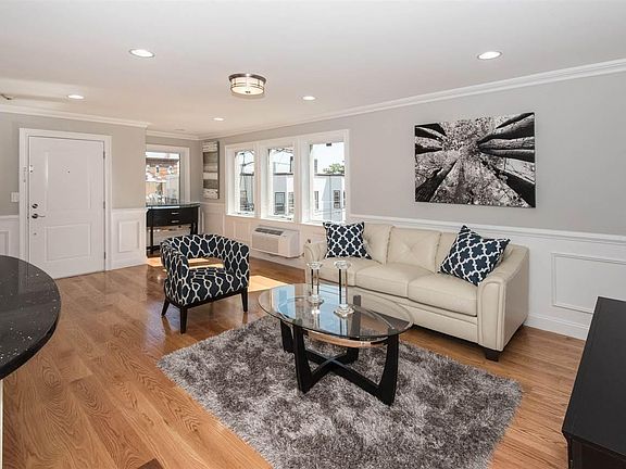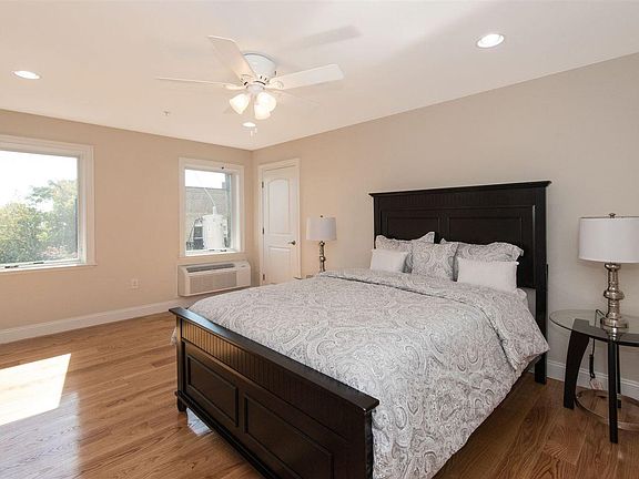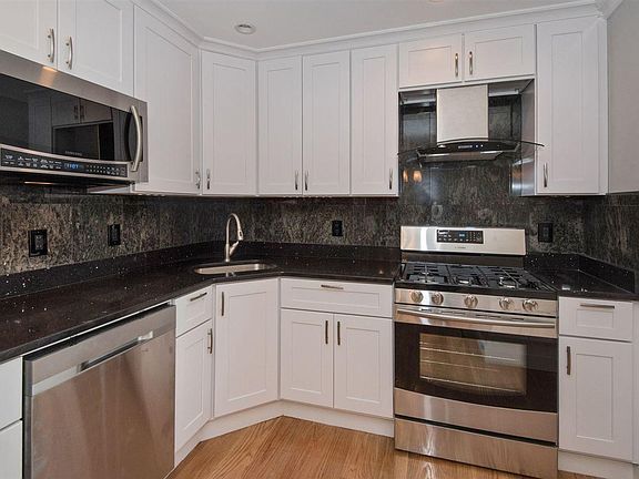 Modern, bright 3BR/3BA condo in desirable Union City. Directly across from Peru Park, this condo features direct elevator access to the unit, boasts wide-plank Oak hardwood floors throughout, state of the art kitchen with stainless steel appliances, gas range with vented hood and black quartz countertops. Two of the bedrooms have on-suite bathrooms and walk in closets; the third bedroom is generous in size with a large closet. Every room is flooded with natural light; unit faces east with partial view of the NYC skyline. In unit washer/dryer. Garage parking for two vehicles included with room for extra storage. Close proximity to shops, restaurants, parks, and easy NYC transportation. Parking included. Tenant pays for all utilities and one month broker fee. Condo HOA move in fee $100.