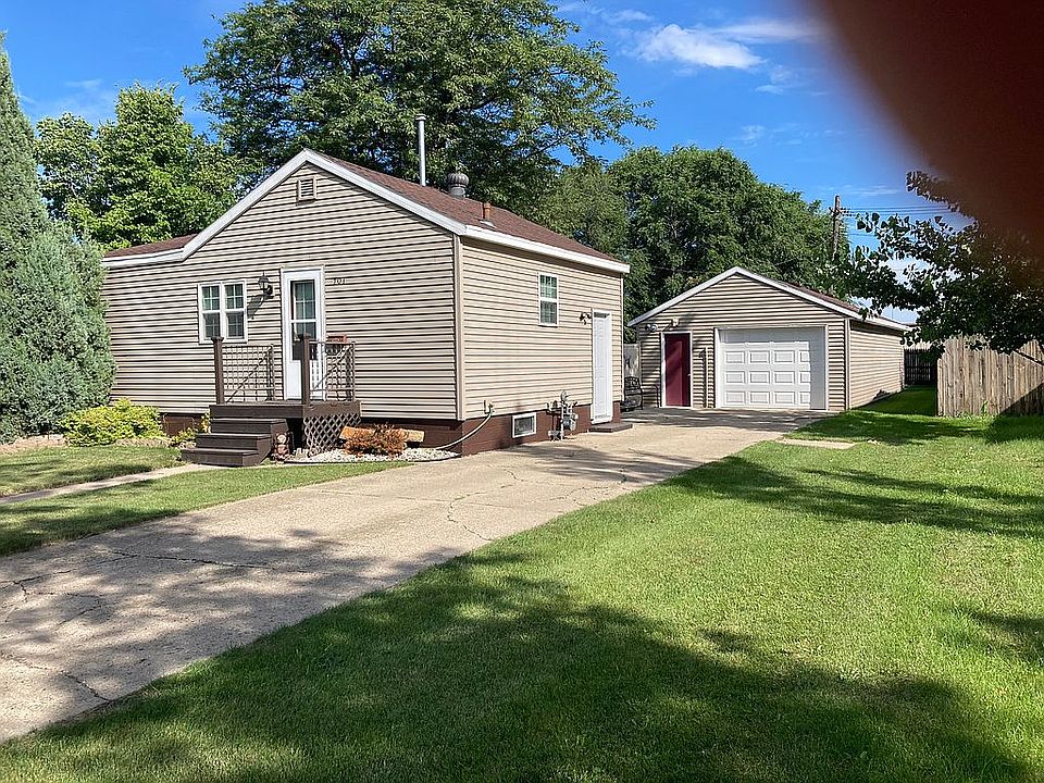 1 bedroom 1 1/4 bath with a 18x46 unattached garage fully insulted and has natural gas with a 7500 watt electric heater for back game/ bar room. Big fenced in yard with a 30x23 deck with built on bar. Inside has new flooring and paint. All appliances stay. Fridge,stove,dishwasher,washer and dryer. Has natural gas and central air. New windows ,vinyl siding and shingles in 2011