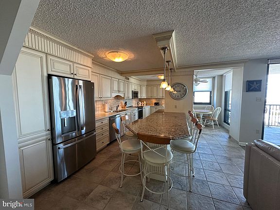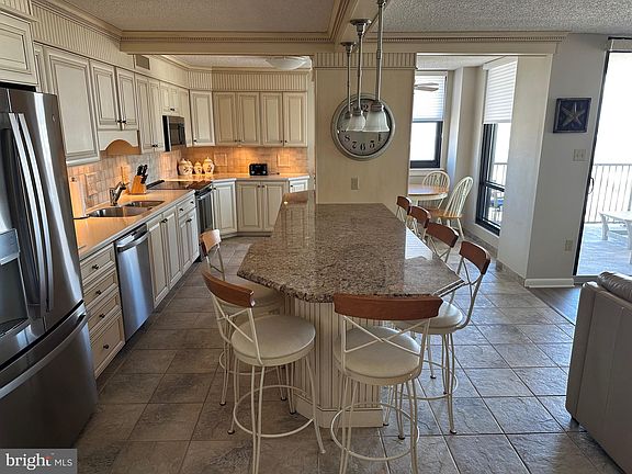 Turn key condominium at the Island House in Margate on the beach! Original owner updated this 2 bedroom and 2 bath with luxury vinyl flooring, tiled kitchen and bathrooms, and freshly painted in neutral tones. Gourmet kitchen featuring all new stainless appliances, along with (1) year old HVAC, and HW Heater. The views from the main living area of the ocean, bay, and AC skyline from the wrap around deck are breathtaking! Just unpack your bags and be ready for the summer of 2024!