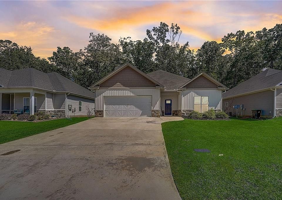All you've been waiting for!! It's finally here - a beautiful brightly lit ranch style home with an open floor plan in the Bonaire Elementary, Bonaire Middle, and Veterans High School District. From new gutters to a whole house water filtration and softening system, LVP flooring throughout main areas and carpeted bedrooms and painted inside and out, the home has it all! Covered back patio overlooking leveled and fully fenced backyard. White Kitchen boasts 2 pantries with easy close cabinetry and drawers open to the great room that has coffered ceilings and a no-fuss electric fireplace! Home has beautiful marble countertops in the kitchen and both bathrooms. Main suite's bathroom has double sinks, water closet for privacy of the most necessary kind and separate soaking tub and shower. Main suite's very large walk-in closet is connected to the laundry room for ease of access. Blinds throughout!! Oversized garage, sprinkler system and much more! (Much more - ceiling fans in all bedrooms and great room, upgraded lighting with pendant lights over the kitchen island, deep double sinks in the kitchen island with an additional approximately 5' of food prep space, crown molding, kitchen backsplash and a home security panel and 5 perimeter cameras)!!! Feels like a brand new house - only 1 owner!! Come see it for yourself. Check out the virtual tour!