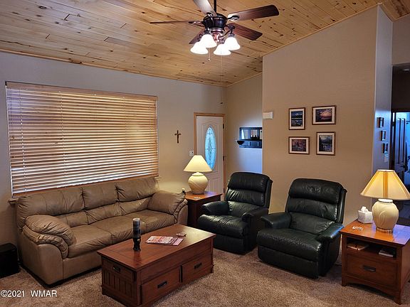 This is the one! Located on a cul-de-sac street, it feels like you have acres behind you. This beauty is cedar sided, split floor plan, with an open airy great room that features cathedral tongue and groove ceilings and a cozy gas stove. Landscaped for easy maintenance including artificial turf in the front yard. Whether you're looking for a quiet mountain getaway or full-time residence this home has it all. Super clean & move-in ready!