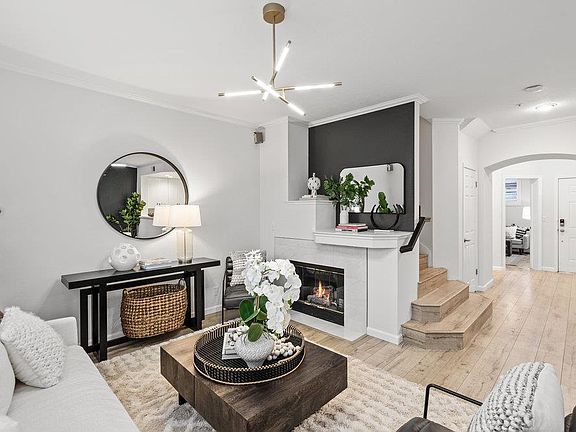 Discover upscale living in this 1,567 sq ft Clipper model townhouse-style condo, boasting a modern renovation over looking the waterways. The spacious living area features high ceilings, and a gas burning fireplace. Admire captivating views from the living room and the adjoining dining area. Explore culinary delights in the chef's kitchen, outfitted with top of the line appliances and a charming breakfast nook. The upper level is a haven of luxury, with the primary suite offering high ceilings, large windows with water views, and a spa-like bathroom featuring a stand-alone tub and separate shower. Two additional bedrooms and a laundry area complete this floor. The lower level presents a versatile room, perfect as a den, office, or 4th bedroom. Parking your car is a breeze in the detached 2-car garage. This home grants access to community amenities: pool, gym, clubhouse, nearby trails, parks, and greenbelts.