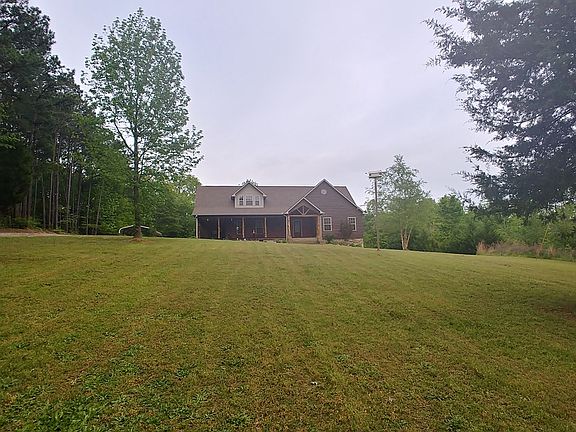 Beautiful custom log cabin on 5 acres , one of a kind ! Like living in a Gatlinburg vacation cabin .Cedar logs for staircase and railing, vaulted 18-20 ft. ceilings in family room, stone fireplace, pine walls and ceilings, and hickory cabinetry. Front porch is 10' wide and goes whole length of house. Screened porch with attic access. Master bedroom on main level with nice bath with tile shower and large whirlpool tub. Full bath off family room. Another bedroom on main level for guest. Upstairs are 2 bedrooms, bath, and a loft area for hanging our . Kitchen is open to den and laundry is off kitchen with pocket door. Acreage is lovely with part cleared and part wooded. Unfinished basement has single garage, workshop area and a storm shelter. This unique cabin will not last long !