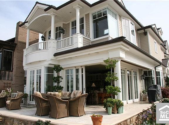 One of Balboa Island's most prestigious Bay Front residences perched on a raised corner lot on the famed Ruby beach. This gorgeous Eastern Seaboard home features Italian accordian doors providing a seamless transition to the veranda for unique indoor/outdoor island lifestyle. Impressive from the moment you enter the over sized Dutch door, with a two story foyer, this home showcases suburb finish detail thru-out. Triple stacked crown molding, built-ins galore, leaded glass windows, an elevator, walnut stained hardwood floors, a stunning gracious gourmet kitchen with Viking, Wolf and Fisher Paykel appliances, walk in pantry including wine storage and three large bedrooms each with full en suite baths. A gracious master suite with vaulted beamed ceilings, large walk in closet, impressive master bath suite and private Bay Front balcony. A perfect home for entertaining a large group or hosting an intimate affair. Truly a special seaside residence that will instantly awe and inspire!