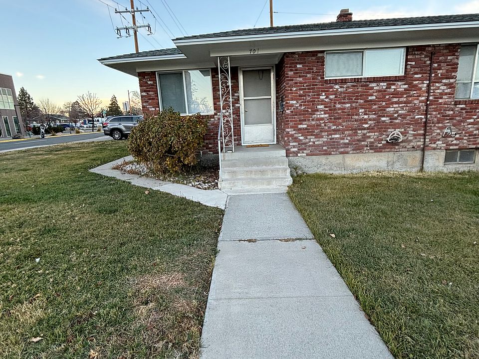 Vintage brick 2 bedroom, 1 bath, 1 car garage unit in triplex. This unit features hard wood floors, lots of windows, and much more. One year lease. No pets. Includes water, sewer, and trash!