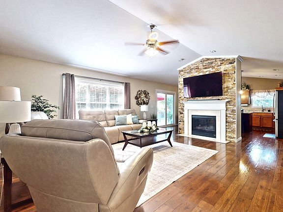 Looking for a Like New Home in an established neighborhood with amazing landscaping and mature trees? You FOUND IT! WOW the updates throughout are over $100,000!. The main floor features living room with a 2 sided gas log fireplace, with the other side giving ambiance to the eat in kitchen complete with granite counter tops, tiled back splash, breakfast bar, ample cabinets, newer appliances, table space, and patio access. WAIT until you see the immaculate back yard! The deck spans the rear of the home, overlooking the fenced back yard, semi secluded too. There is space behind the back trees with garden sheds. The owner's wing has a walk in closet and stunning bathroom with granite counters and double shower with glass doors. There are 2 additional bedrooms and office on opposite side of the home. Laundry room leads to the 2 car garage with epoxy flooring. The basement is fully finished with a large family room, craft/office room, bedroom, full bath and storage, plus a water back up sump. Basement exterior walls, ceiling and furnace room insulated with soundproof/fireproof type insulation. Additional UPGRADES: Roof 2021, Gutter Guards, Underground downspouts, ALL interior paint, Wood flooring, bathrooms, basement flooring, fixtures, pergola & deck, humidifier added to furnace and more...