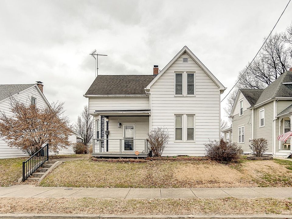 Cute 3 bedroom 1 1/2 bath home with above ground pool!!! This home has a large living room, dining room and kitchen on the main level along with a bedroom and half bath. Upstairs you will find two spacious bedrooms and a large full bath. Perfect back yard for entertaining, fully fenced with a patio, a deck and an above ground pool. There is also a detached two car garage out back for off street parking. Fresh paint on the main level and brand new flooring in the living room. There are laundry hookups in the basement and also in the main floor bedroom. This home is move in ready.