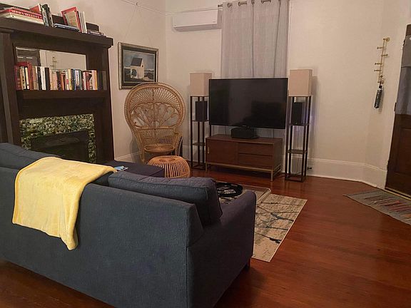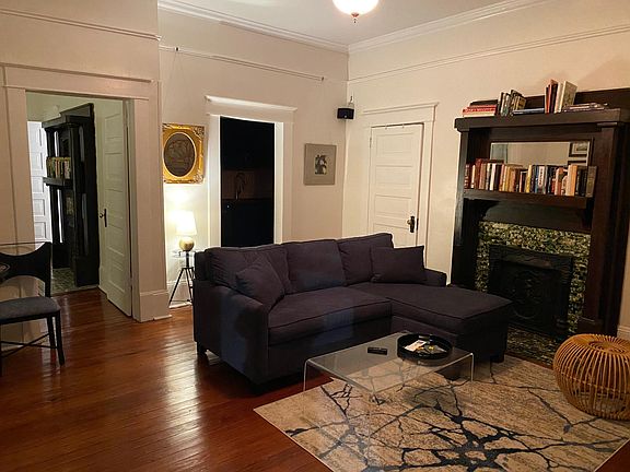Remodeled duplex with unique architectural features, built-ins, in-unit laundry, gas range, small fenced yard shared between units. Unit has an individual entry and porch sitting area Also includes 2in blinds, one off street parking space, electronic door lock, access to 4 on site - exterior Ring Security Cameras. All utilities included (gas, power + Wi-Fi)