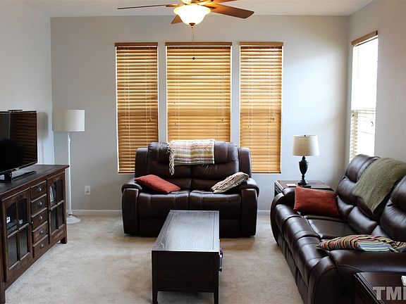 All brick, end unit town home. Open floor plan, hardwood floors, extensive trim, blinds. In excellent, move-in condition. Location is perfect, close to down town Raleigh, easy access to the highway and shopping. Community includes pool, tennis, volleyball court, fitness center, playground and walking trails.