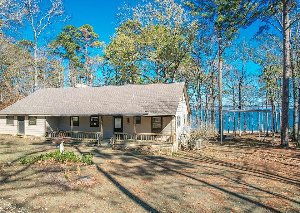 Discover peaceful main lake waterfront living in this 3 bed, 2 bath home on 2.6 acres set in a quiet, private, and serene neighborhood where you cannot see the one other home. With approximately 225' of usable shoreline, a sandy beach, and thoughtfully designed outdoor spaces, this property offers the perfect blend of comfort, privacy, and recreation. Enjoy the outdoors year round with covered porches, an inviting firepit, and a charming outside cabana ideal for entertaining or relaxing by the water. The home offers boat storage, RV storage, and a spacious workshop or additional storage. Inside, the home features a tastefully upgraded kitchen with new appliances, granite countertops, and a tile backsplash. Hardwood floors flow throughout the main living areas. The primary suite offers a walk in tile shower and a separate dressing room. Additionally the home includes a full home Kohler generator for peace of mind. This is a rare opportunity to own a truly private waterfront property.