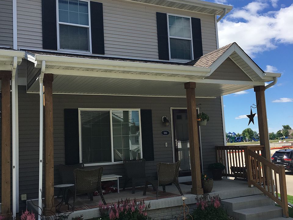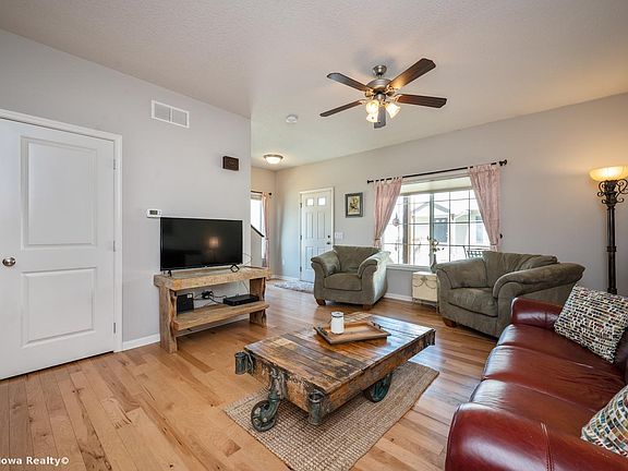Spacious townhome located next to 6 acre park at the Legacy community pool & clubhouse Over 2000 SQ FT finished with plenty of unique features Hdwd floors throughout main level with 9' ceilings and lots of windows in this end townhome. Kitchen features Espresso cabinets, granite counters, tile backsplash, SS appliances, undercabinet lighting, & corner pantry. Master bedroom is very large with box ceiling, 3 windows, and plenty of space for furniture. Master bath has large vanity, 5' shower with tile above, & linen closet. Laundry located on second level has a linen closet also. Lower level has large family room Front porch for outside coffee as well. Heat pump for Energy efficient home avg $122 per mth Internet included in HOA fees