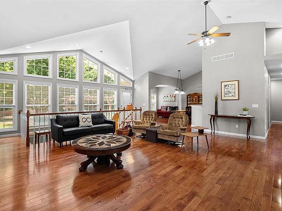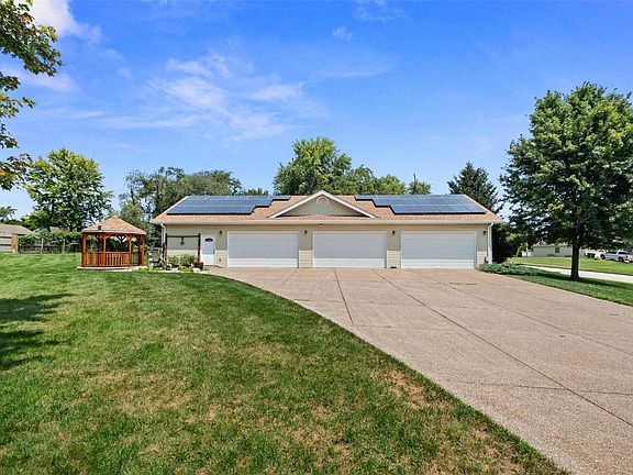 Priced 30K below recent appraisal!! Car enthusiast or those looking for an out building or 2nd garage, this beautiful ranch home on 2 acres could be just what you are looking for, with 2 car oversized attached garage and an amazing 6 car heated detached garage that offers 2100 sq ft, full bath, tool room and entertainment area. Over 5000 sq ft of living space in this well appointed home, with 5 bedrooms, 2 full and (2) 1/2 baths, large great room open to the lovely kitchen, breakfast & hearth rooms. Stainless appliances new in 2022. A lovely 14x13 sunroom overlooks the picturesque backyard. The full finished basement provides bedrooms 4 & 5 with full egress windows, a 1/2 bath, family room & recreation room. New Roof June 2024, HVAC System fall of 2023. You are sure to enjoy the lovely outdoor space with large patio, firepit and gazebo plus an abundance of trees which provide backyard privacy on your 2 acres. Did I mention the Solar Panels? See the feature sheet in the attachents. Additional Rooms: Sun Room COOL: 14 SEER+