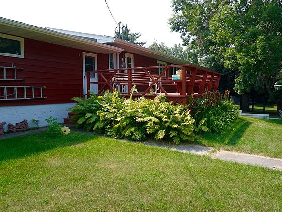 This spacious walk-out rambler on the edge of town has an impressive 5 bedrooms (2 are non-conforming in the basement), 3 bathrooms, NEW SHINGLES, newer windows, many custom built-ins, main floor laundry, basement bar, 2 large living areas, insulated garage and redwood deck with a gorgeous view. Surrounded by evergreen trees, the house sits on 4.5 city lots.