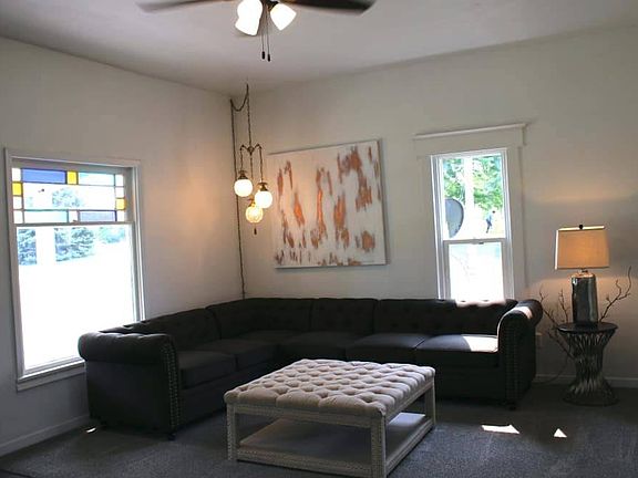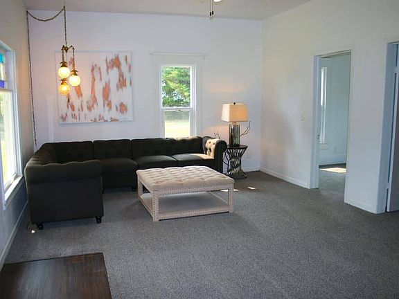 This beautiful home is completely remodeled and move-in ready. It is a 1,248 sq ft home with three bedrooms and two bathrooms. The lot is a spacious 0.63+- acre and has a detached pull-through 40x24 garage/shop and mature apple, mulberry and shade trees. The homes open concept floor plan consists of a living room, dining area and kitchen with column and eating bar as subtle divisions. Living and dining room have new carpeting and kitchen has simulated wood vinyl planks. Cabinetry is gray and appliances are included. There is a separate pantry room. The laundry area is separated from the other rooms. The master bedroom is 11x12 with carpet and a large closet. The master bathroom has tile flooring, new shower, fan/light, toilet and vanity. The second bedroom is 11x11, carpeted and has a closet. The third bedroom is smaller, no closet, and could be a child's room, nursery, office, etc. The second bathroom has a tub/shower and tile floor. The house has wood siding, a metal roof, new 10x10 deck, and new replacement windows. The detached garage/shop is 40x24 and has pull-through doors on both ends. Home: 1900 / Complete Remodel 2021 Lot: 0.63+- Acre Garage: 40x24 NEW: Lennox High Efficiency HVAC Carpeting and Tile Flooring Paint Wiring PEX Plumbing Ceiling Fans LED Lighting Deck Replacement Windows