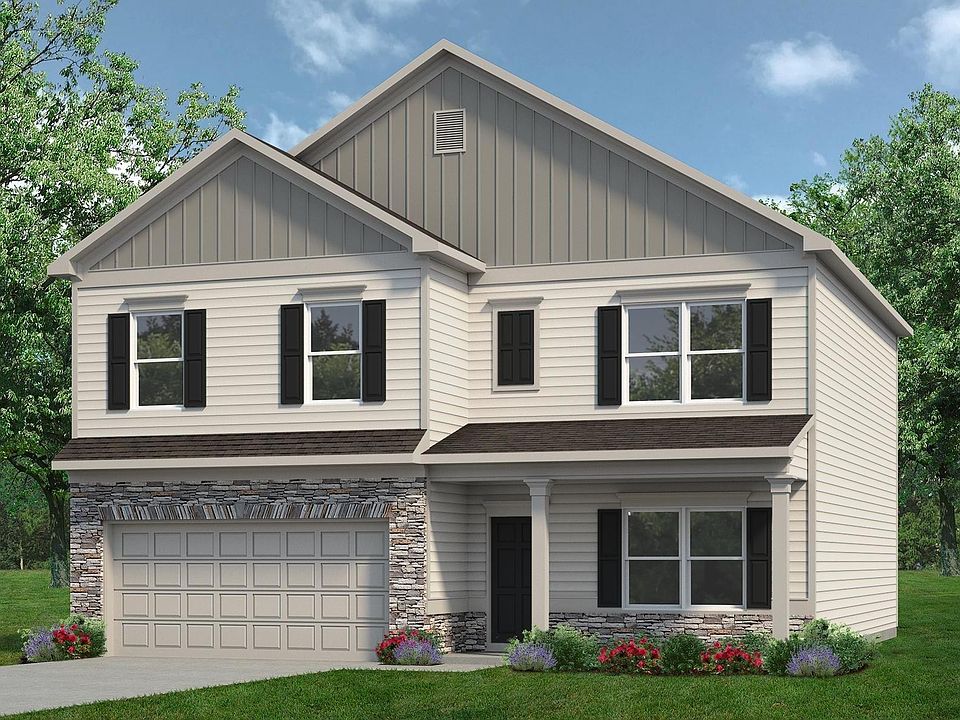 The McGinnis at Stratford Station offers a two-story floorplan with a welcoming wife entry leading to a traditional dining room that is perfect for entertaining. Both the kitchen and family room live to the rear of the home, with convenient access to the yard from the kitchen area. Upstairs the owner’s suite with very large walk-in closets and a large secondary bathroom are all located off the open loft perfect for a workspace, playroom or hobby space and there you’ll find an ample laundry room. For flexible living, a study or fifth bedroom and full bath is optional on the first floor in lieu of a dining room. Smith Douglas preferred lender, Wesley mortgage can offer a fixed %4.875 interest rate!