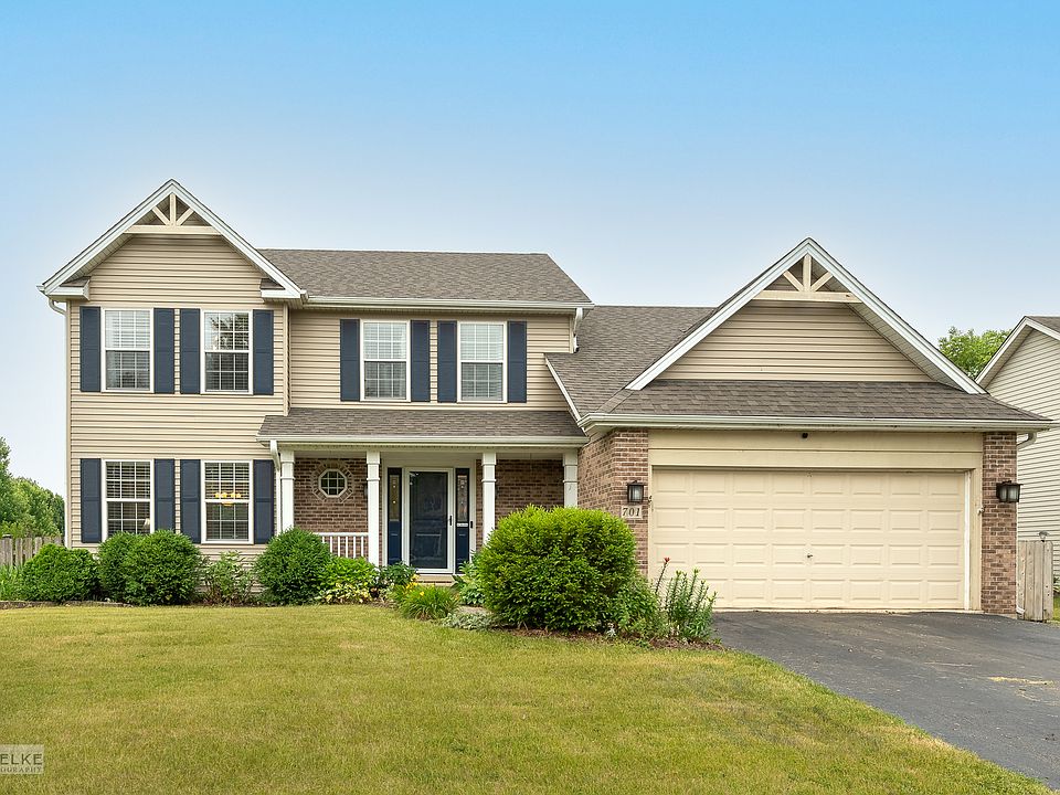 Wonderful property in Oswego's Lakeview Estates just listed! Offering an open concept footprint, the first floor showcases updates over the last 8 1/2 years including new kitchen cabinets, hardwood floors, granite counters, recessed lighting, patio slider door and more! The kitchen offers desirable countertop space, a peninsula island for easy serving, additional seating and the living area features a fantastic entertainment layout. No sacrificing a home office as the first floor is thoughtfully laid out with a versatile option to keep the traditional dining room or use the space to create a home office, or playroom. The oversized two car garage includes a bump out for additional storage or a workbench area. Entering the home through the garage after a long day you'll appreciate the expansive laundry room; create a drop zone for all those book bags, sports equipment, a place for everyone's winter boots- a truly coveted feature hard to find! The architectural shingle roof and siding were replaced in 2016, water heater 2013, water softener is approximately five years old, upgraded blinds were installed and bathroom updates include a first floor powder room remodel, vanities in the upstairs baths and tile work in the owner's suite. New white doors and sleek hardware were installed throughout the property with the home painted in neutral greys and whites. Three upstairs bedrooms, all with quality size closets are offered on the second floor along with the bonus loft area! A great space to hang out, create a home study area or easily close off to make a large recreational room of a fifth bedroom. The fourth bedroom, located in the basement, was designed leaving two open areas, one for abundance of storage and another open area for a playroom. Needing more privacy and space? Finish off one of the basement open areas with the existing rough in for a full ensuite downstairs! Nestled on a corner lot, there's plenty of room in the large yard to expand the existing deck or create a backyard oasis! No storage shortage with this property as there's plenty of room in the shed for yard equipment, summer toys and additional tools. This home is in close proximity to multiple parks within the neighborhood and just a short distance from Oswegoland Park District's desirable Prairie Point recreational area and District 308 schools. Don't forget the amazing shops and dining options located in charming downtown Oswego! Grab a scoop of ice cream at downtown Oswego's newest shop, THE SCOOP, stop by the library, shop antiques, enjoy wine tastings or a cup of coffee at one of the many shops. The Fox River scenery from the many pedestrian paths is always a local favorite and enjoyed during the abundant community focused events Oswego is so well known for. A fantastic home is ready and waiting for you- don't miss out!