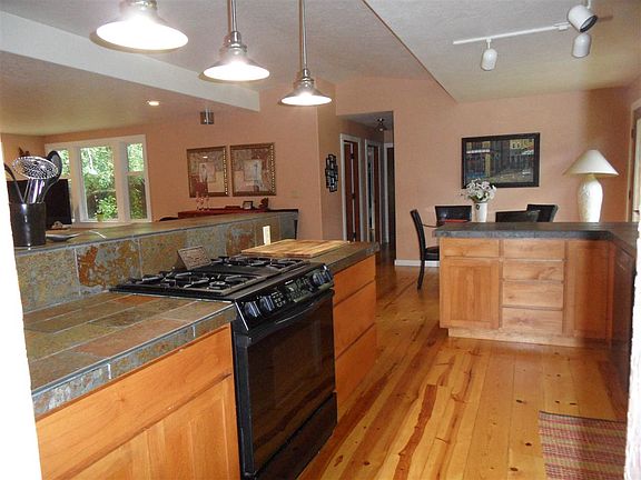 Private 2 acres at the end of the road- Stunning 3 bedroom 2 bath home with cedar shingle siding and bright white trim. Beautiful. This home truly brings the outside in With large ceiling to floor windows and many glass doors to the the out side. Very open floor plan With knotty pine floors and a natural slate entry. Lovely kitchen with slate counter tops, gas stove, stainless appliance, and a butlers pantry. This home features a master suite that will be just one of your many favorite part of this home.