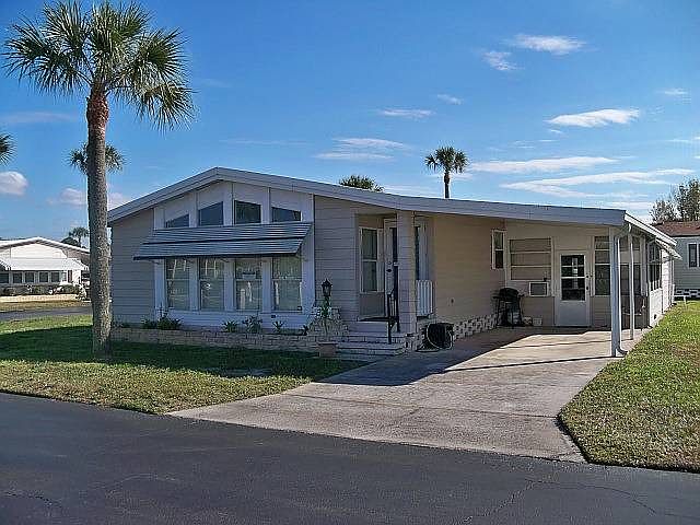 This 1456 SQ. FT., 2 BR 2 BA home is a short walk to the clubhouse, pool, and other park amenities, and mailbox center. 2018 AC with air to 250 SQ. FT. FL Room as well. Has a great view of the pond. Home features new kitchen cabinets, appliances, flooring and island. open Floor Plan and desk Nook. 2017 Hot Water Heater, and Remodeled Master Bath, New Slider door to Lanai, and New Vertical blinds and carpeting in Living Room, Definitely a Must see.