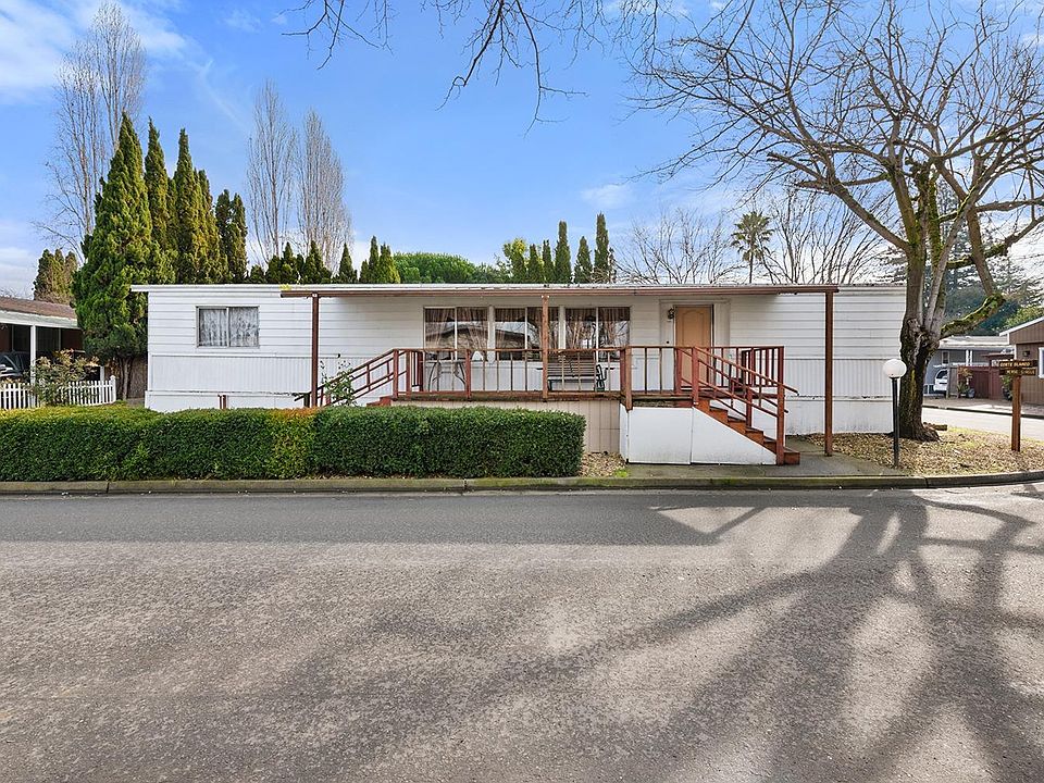 Spacious mobile home in an all age park in need of major repairs. Secure this great location with a large yard for gardening and enjoy the outdoors complete with established roses, shrubs and trees. A garden bed awaits its opportunity to once again flourish. The interior layout is inviting yet allows for privacy with the generously sized primary suite on one end and the remaining 2 bedrooms and full bath at the opposite end of the home. The primary suite offers a walk-in closet and ample windows for natural lighting. There is a second walk-in closet off the hallway across from your laundry room. The secondary bath has a built in linen closet, and there is a pantry off the hallway as well offering you plenty of storage space throughout the home. Whether you choose to completely overhaul the structure all at once or chip away at the projects, this home is priced to afford you the opportunity to make it your own. The Sonoma County Transit bus stop is conveniently at the entrance to this community and the 101 is minutes away for commuters. Parking for up to 3 vehicles in driveway next to home and nearby guest parking. Space rent includes sewer, trash and water. PG&E is an additional charge based on usage. Cash offers only!