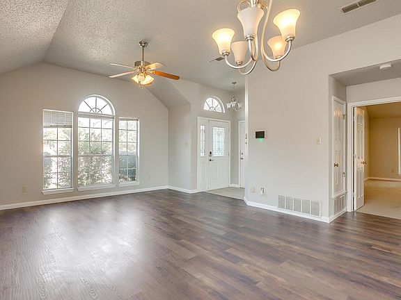 Amazing starter home. The home is a 3 bedroom, 2 bath with 2 car garage on a nice lot with a shaded backyard. Updates include Granite counters, Travertine and ceramic tile floors, and ceiling fans throughout. Vaulted ceiling in the living room with wood-burning fireplace. The master bedroom has vaulted ceilings with his and her walk-in closets. The master bath has a separate shower with pebbled flooring and a large soaking tub. Carpet in bedrooms. Wood laminate in living areas. Great home in an established neighborhood in Fort Worth. Easy access to dining, shopping, highways, entertainment, etc... Come and make this one your own.