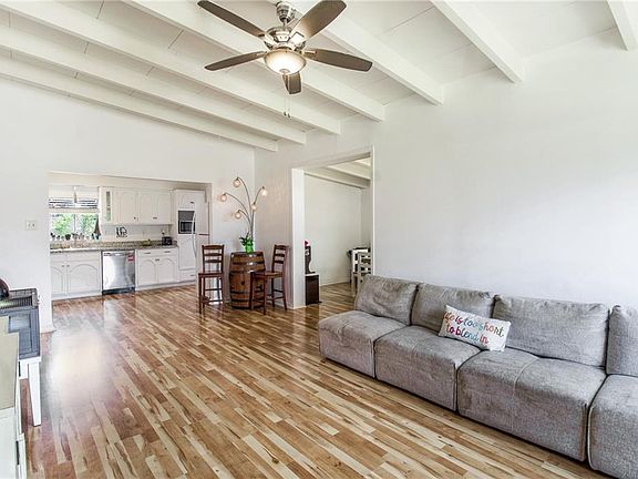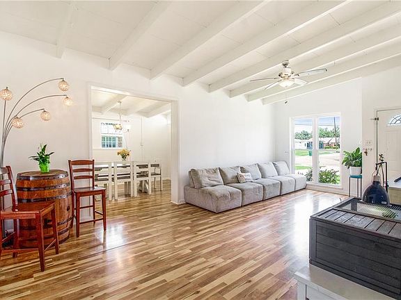 Charming Mid-Century Modern home! This corner-lot gem features 3 bedrooms, 2 full bathrooms, and plenty of character. Inside, you'll love the high vaulted ceilings that give the home a spacious and airy feel. The bright and cheerful living area is great for entertaining or relaxing. Bonus den/office space adds flexibility and versatility, giving you a place to work, study, or play. Newly updated kitchen features granite countertops and stainless steel appliances. Attached walk-in laundry and rear yard vehicle access are just some of the other great features about this house. Assumable flood policy under $700/year!