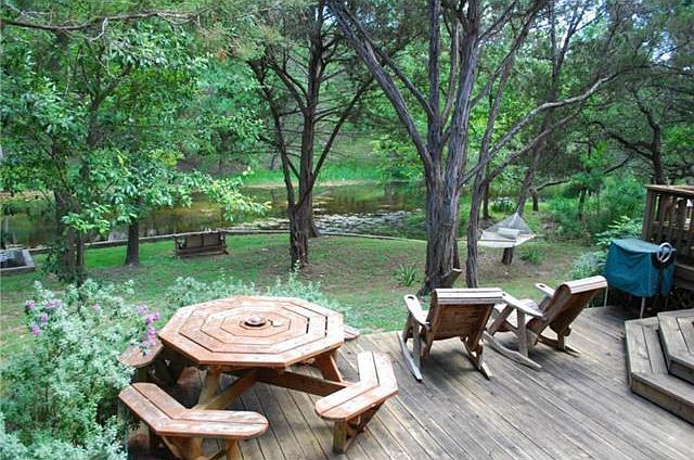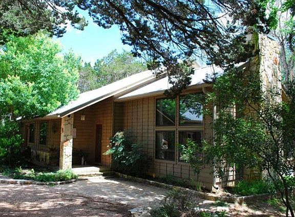 A CHARMING LONE-MAN-CREEK FRONT HOME. On 3.467 natural acres surrounding with towering trees. Top quality standing seam metal roof, rock/frame siding and various levels of decks. Two separate buildings connect thru gated courtyard with separate A/C units, heating and Septic systems. 3 bedroom suites plus 2 half baths. Office. Utility Rm. 1700+ sq ft OD LV. Peach, plum, pear, Cypress, Sycamore, cedar and Mountain Laurel dot the land. Fishing, kayaking and swimming in spring-fed water. Show by appointment.