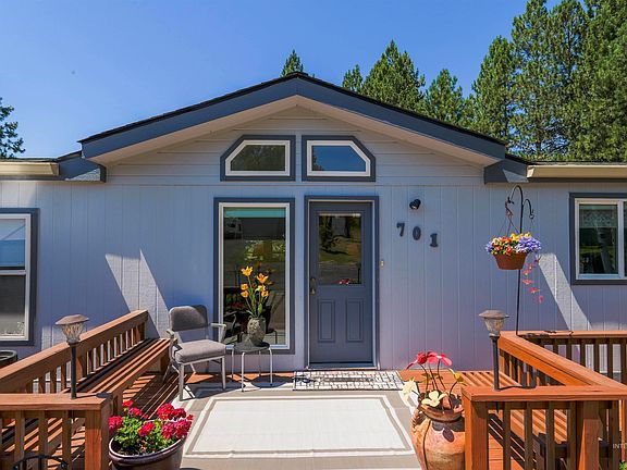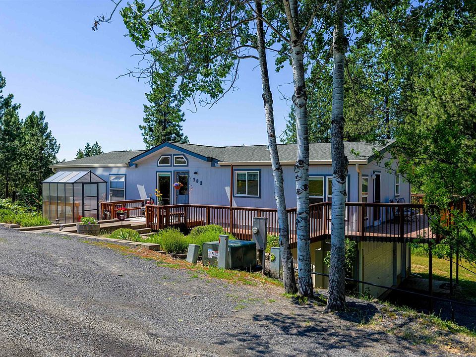This spacious home sits in a quiet Deary neighborhood and is a Gardener's oasis with loads of privacy on a quiet end of the street. Offering 3 bedrooms upstairs (including a master suite) and 2 additional bedrooms in the walk-out basement, 2 full bathrooms on the main level and 1 half bathroom installed in the basement, this home is appointed with all the amenities and loads of natural light. Special features: Fresh exterior and interior paint; refiniished cabinetry, new counters and sinks in baths,new vanity and toilets, new window shades,shower doors,refinished deck;new screen doors, new appliances up and downstairs; Pellet stove upstairs, free standing gas stove in basement, wraparound deck, fruit trees, berry bushes, grape vines, kiwi vines, nut trees, fenced-in vegetable gardens, greenhouse, wrap around back deck and covered lower patio. This property is a great option for someone looking for a spacious home in a private park like setting!!