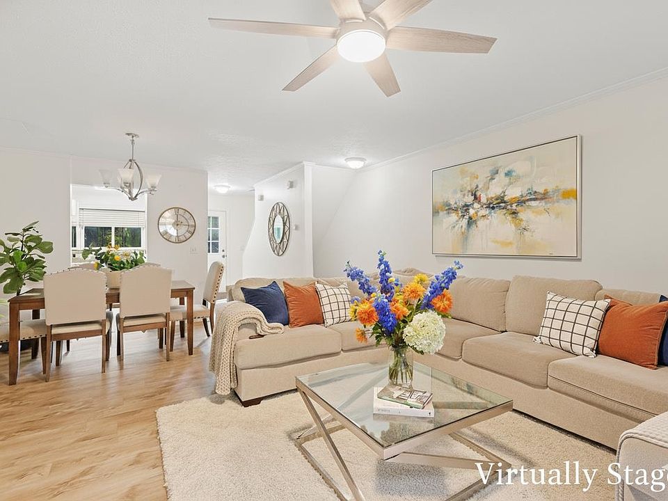 Welcome to your new home at Ashbrook Park on Dorset Street, where convenience and comfort come together. Imagine being minutes from shopping, dining, and daily essentials, with Trader Joe’s right down the street, while still enjoying a quiet, tucked-away community. This spacious three-level townhouse is designed for both function and flow. The main level features an open living and dining area, filled with natural light and opening to a private balcony, perfect for morning coffee or evening relaxation. Upstairs, two well-sized bedrooms and a full bath create a comfortable retreat. The finished walk-out basement offers a flexible bonus space with a second bathroom, ideal for media room, family room or home office. Recent updates include new laminate flooring, fresh carpet on both staircases, updated light fixtures throughout, and fresh paint on the first and second levels, giving the home a bright, move-in-ready feel. Two dedicated parking spots, plus plenty of guest parking, make life easy for you and your visitors. Here, everything you need is at your fingertips, in a home that’s ready to welcome you.