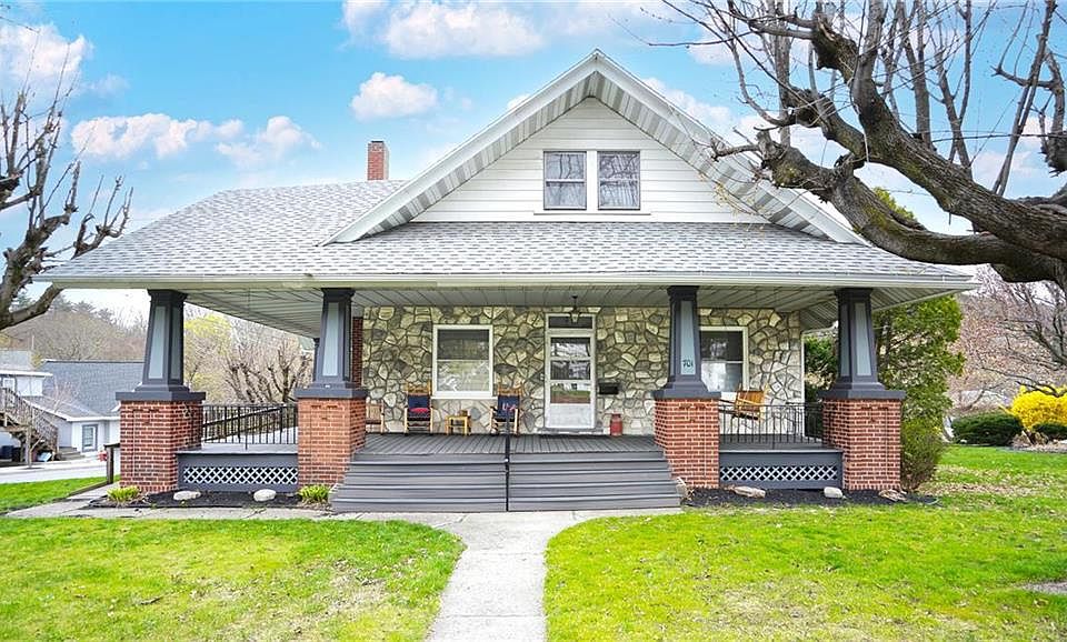 Exquisite Tamaqua Craftsman blends flawlessly maintained and restored original elements with updates throughout this expansive home. A deep wraparound porch, restored with Trex decking, is the ideal welcome. The main level presents with front living room, open to a dining room and onto the spacious kitchen, as well as a dedicated office; further, two large main level bedrooms and a full bath featuring exquisite original elements in tile and fixtures. Stunningly restored wood moldings, doors, hardwood inlay floors and decorative architectural touches complete a dazzling first level. Upstairs three more spacious beds and two full baths which include a sprawling sanctuary of a master suite. Both upstairs bathrooms offer radiant floor heat! A full, walk-out basement has endless possibility for multiple uses and storage. Outside, the double lot offers a two-level yard with room for play and a large concrete hardscape providing patio or parking in addition to the detached two-car garage.