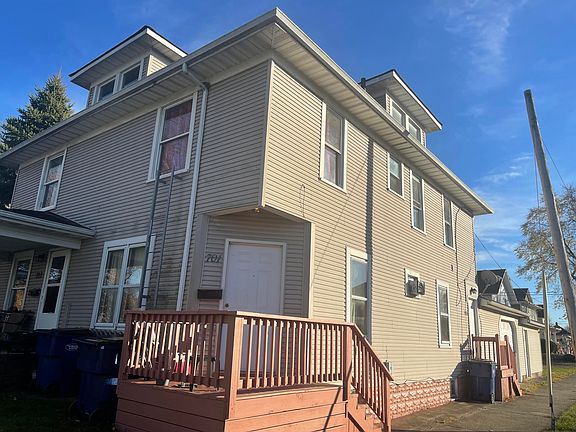 Being sold in ''As Is'' condition. Sellers will make no repairs. Tenant occupied in all 3 units-newer siding & windows, roof 2018, painted the upstairs apt 2020, newer flooring & celing tiles in 2018. Downstairs apt one unit down faces Murray St sellers pay water, sewage & trash for each unit. Laundry hookups in the nasement for the 2 units downstairs. 2-1 car attached garage & workshop is rented for $80 a month-off alley behind property 1 car attached garage belongs to the tenant of the 2 bedroom unit-downstairs (left unit)-no garage. Rents for each: 2 bedroom is section 8-pays $550, the other 2 units rent for $480 each. Tenants would like to stay. They've been there at least 2-3 years, some longer.