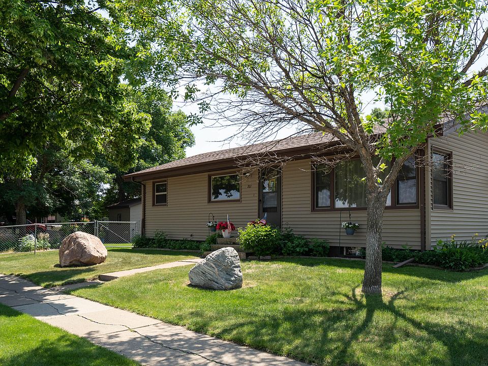 This is a well kept ranch style 4 bedroom 2 bath home in SE Bismarck. The first thing you will notice is the great frontage with mature trees, great landscaping, flowers, plants and a fenced back yard. Making your way into the home you will love the big kitchen with updated appliances and a tile backsplash. The living room has plenty of windows and is open to the open staircase to the lower level. There is also 2 nice sized bedrooms and a full bath on the the main level. The lower level is finished and features a family room, 2 more bedrooms (one has an egress window) and 3/4 bath and the laundry room with room for storage or an extra freezer. Outside has a bunch of features including 2 sheds, plenty of plants and places to plant them, a big patio, a huge camper pad and a garden spot. There is also a finished 2 stall attached garage that is insulated, heated and has window a/c. With all this place has to offer it would be easy to make it a home.