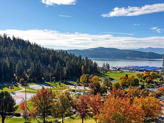 Take advantage of this exceptional opportunity to acquire one of downtown Coeur d'Alenes desired luxury condos at McEuen Terrace. Enjoy the 13th floor captivating views overlooking Lake Coeur d'Alene, Tubbs Hill, and McEuen Park. Convenient proximity to restaurants, entertainment and boutique shopping, along with numerous recreation amenities! This well-appointed 2203 SF one-level floor plan includes a large, covered terrace providing year-round territorial views, and extra-ordinary enjoyment of the 4th of July fireworks and holiday scenes on the lake! The spacious Great Room & Dining Room enjoy sweeping views, gas fireplace, attractive built-in entertainment center, bookshelves and cabinets. The gourmet Kitchen features granite counters, gas cooktop, wall oven & microwave, dishwasher, trash compactor and large eating bar. The Primary Bedroom has beautiful views with access to covered terrace, large walk-in closet, ensuite bath with large vanity, walk-in shower and separate jetted tub. The two additional bedrooms feature custom cabinetry and Murphy beds adjacent to the well-appointed guest bath. There is abundant storage space within this luxury-designed home, too! Youll enjoy the tranquil living provided with the secure building access and a private individual 2-car garage! In addition, there is a common fitness room and entertainment room on the first floor. A top-notch choice for downtown luxury living!