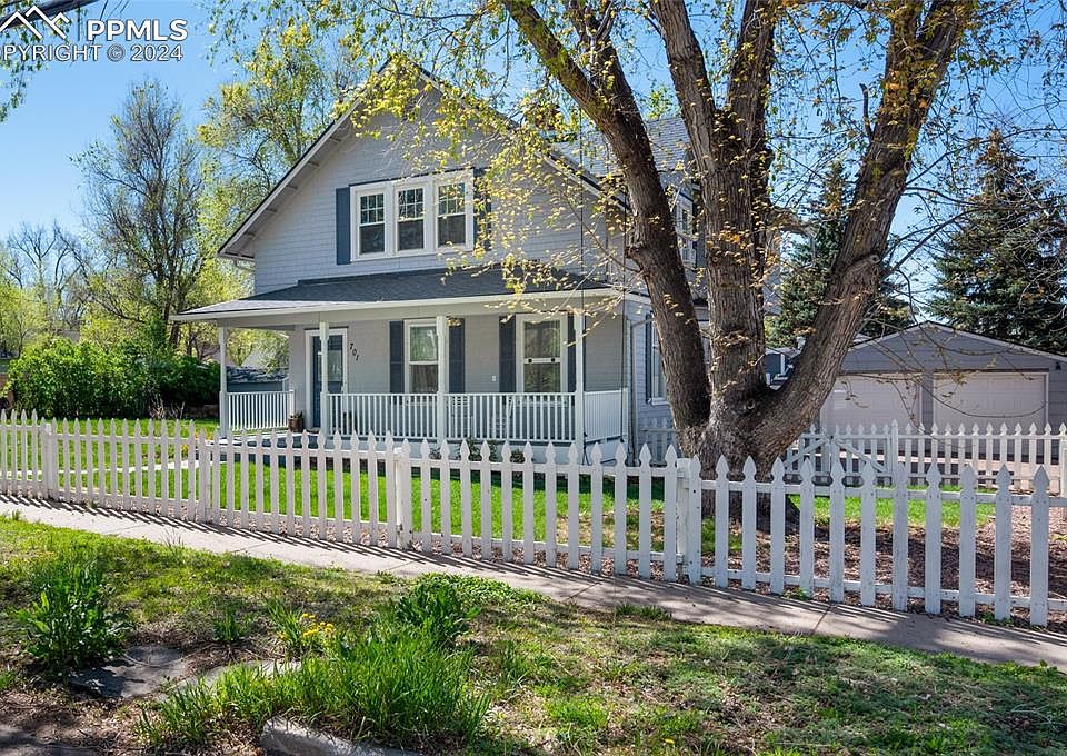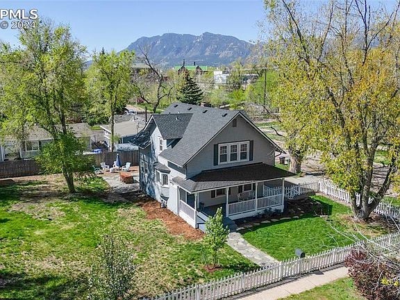 Charming historic home with views of Pikes Peak! Nestled on a quiet, low-traffic street, this lovingly maintained 1912 home combines historical allure with modern sophistication, ideally located within walking distance of Downtown Colorado Springs & an array of local amenities. Boasting a rare double lot adjacent to the serene Mid Shooks Run trail, this property offers an exceptional blend of city accessibility & tranquil outdoor living. The exterior, set on a fully fenced lot shaded by mature trees, features a welcoming front porch & a spacious 486sqft flagstone back patio, perfect for entertaining & enjoying the stunning views of Pikes Peak & the Front Range. The original charm of the home is preserved through original built-ins & woodwork. The home opens to a spacious living room anchored by a cozy fireplace, creating an inviting atmosphere for relaxation. The dining room is a highlight with bay windows that fill the space with natural light. The kitchen has been thoughtfully updated to include modern stone countertops & ample storage space. The updated primary suite is a true retreat located on the upper level & featuring a private balcony that overlooks the surroundings. The ensuite bathroom is well-appointed with a step-in shower & dual sinks. Two additional bedrooms complete the upper level, offering generous space. This home provides endless opportunities for outdoor activities such as walking & running, both north & south along the nearby trail. The proximity to restaurants, coffee shops, breweries, distilleries, & parks adds to the lifestyle quality, making it a coveted spot for those who enjoy being close to urban conveniences while residing in a peaceful, picturesque neighborhood. With its combination of original character, thoughtful updates, & unbeatable location, this home is a rare find. Whether you're hosting a backyard barbecue or enjoying a morning coffee on the porch, this home offers a quality of life that is hard to surpass!