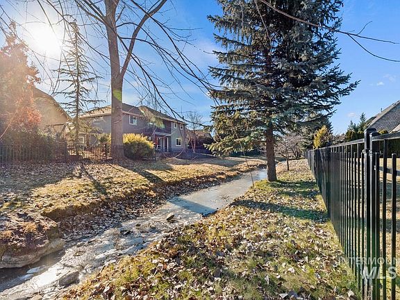 This beautiful, SINGLE-level home is tucked in a peaceful cul-de-sac within the gated section of Lakemoor Subdivision. Designed for comfort and entertaining, the open floorplan features a gourmet kitchen with a granite slab island, double ovens, a large pantry, and a dining room with access to the covered patio. The luxurious master suite includes a private exterior entrance, a soaker tub, and a spacious double-door walk-in shower. A custom fireplace creates a warm and inviting focal point, while the home also offers large windows, spacious guest rooms, a versatile den/office, and a large, 3-car garage with epoxy-finished floors & built-in storage. The East facing, fenced backyard oasis boasts a year-round creek, bringing nature’s beauty to your back patio. This neighborhood is known for its lush landscaping, scenic trails, creeks, fishing ponds, Boise River Greenbelt access, tennis/pickleball courts, a community swimming pool, and walkable distance to dining and entertainment, including a movie theater.