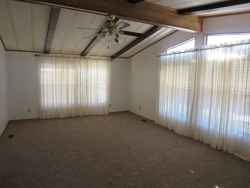 Spacious triple wide in senior park. Shows great, New Roof, New flooring in most rooms, Fresh interior paint, pest clearance. Home features both living and family rooms with a built in bar area , formal dining with built in hutch, spacious kitchen with area for dining table and built in desk, large indoor laundry room with more cabinets for storage, a front covered patio and a back covered screened in patio. There is a larger than most, fully fenced backyard with an extra storage shed, fountain, room for garden and seating area. This is a must see, will not last!