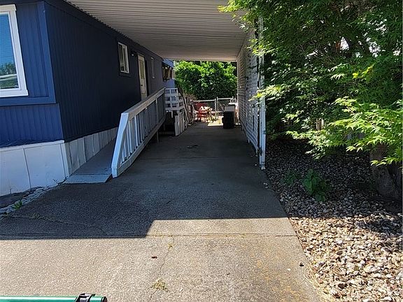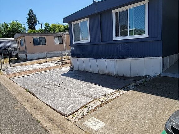 Cute place in a desirable 55 plus park has new paint new flooring, It has a new ac unit and the front deck has been replaced. The back yard has fruit trees and a shed. There is a nice carport and ramp. Landscape was started its ready for the new owners to make it your own look. The roof was recently coated. This park has a rec room and a swimming pool.