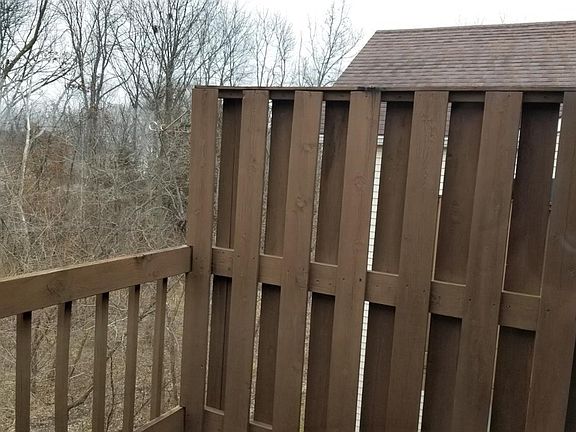 Very nice upper level condo with vaulted ceiling. Large picture window, facing into the woods. Deck with sliding door off dining room for private outdoor dining facing into the woods.. 2 bedrooms, 2 bath, including en suite master bedroom, with lots of light, ceiling fans in bedrooms and living room. Dining area has vinyl flooring, living room beautiful sculpted carpeting. Very attractive well maintained, nicely landscaped grounds and condo building. Detached 1 car garage, and additional basement storage. $125 monthly condo fee. See real estate office for HOA covenants and bylaws.